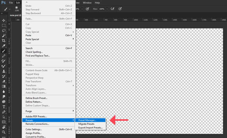 1. going to Edit > Presets > Preset Manager.