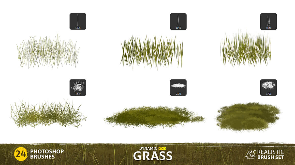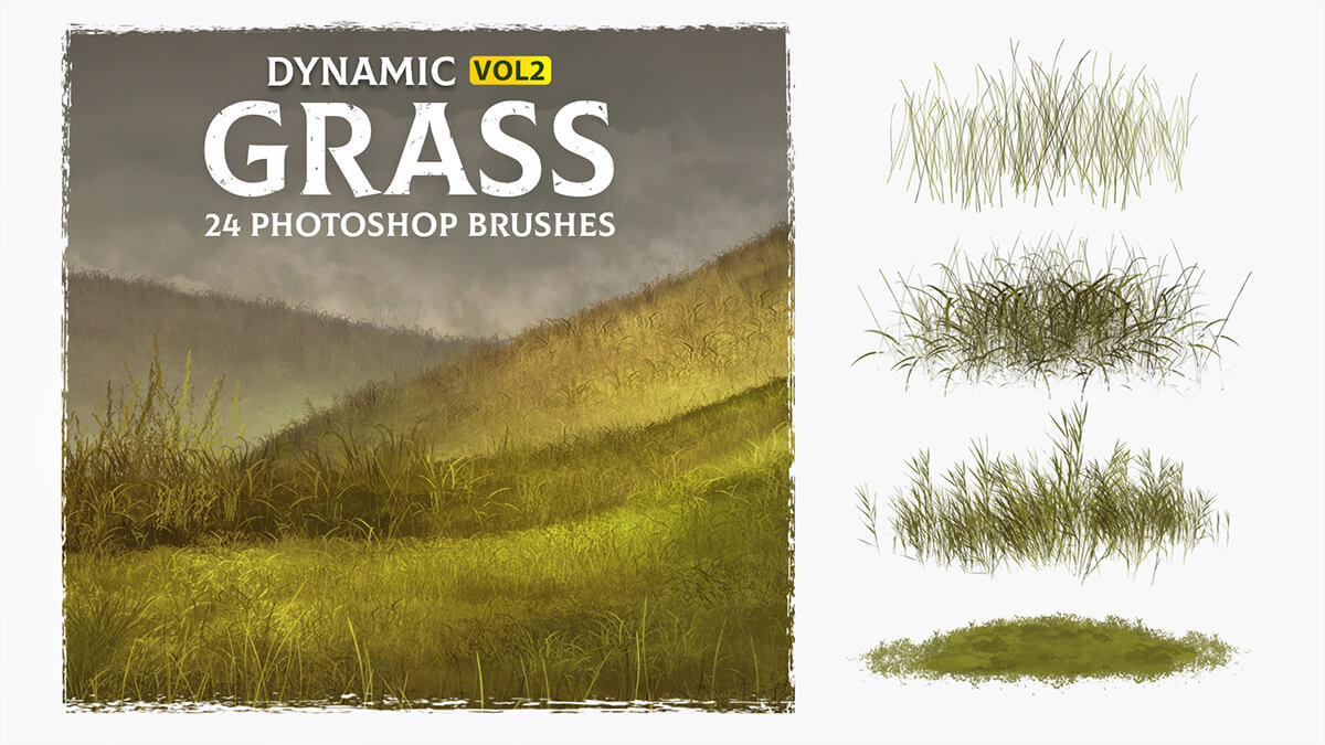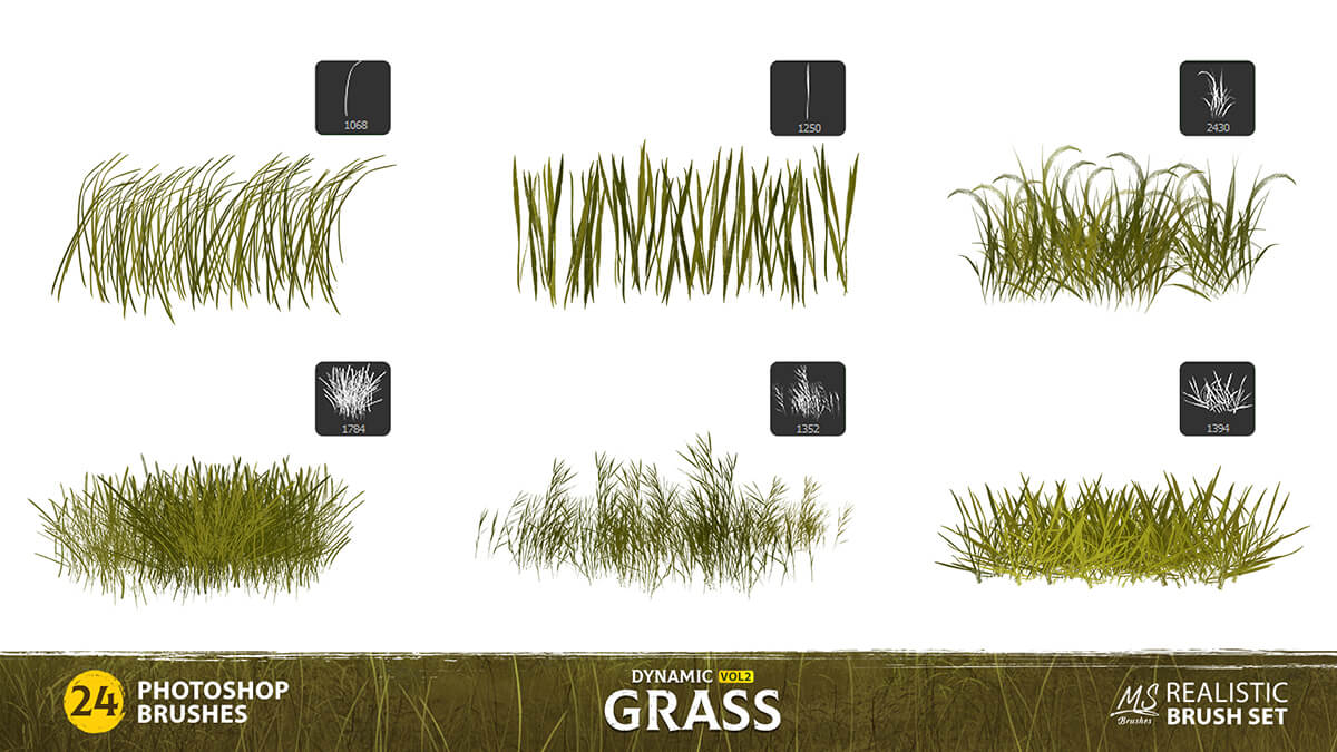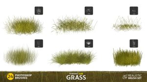 this set of 24 high-quality dynamic grass brushes for Photoshop.
