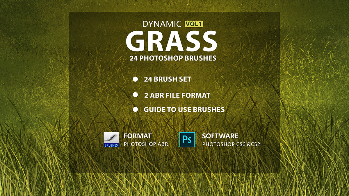 set of 24 grass brushes for Photoshop to Create realistic and beautiful grass in seconds!