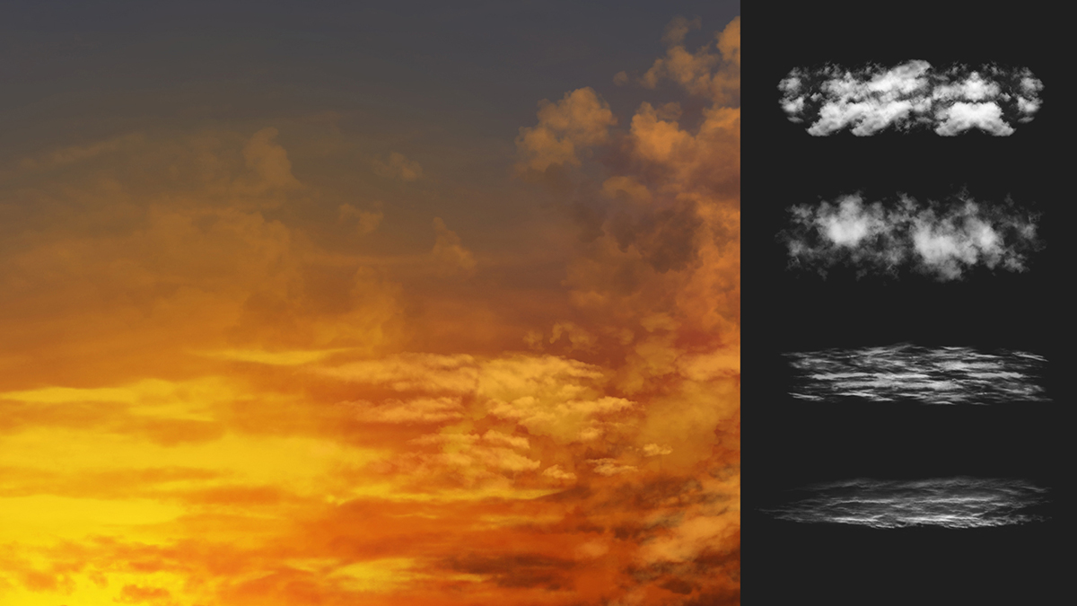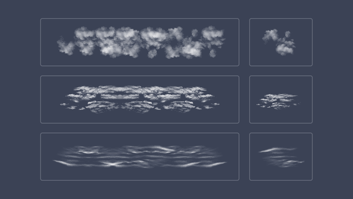 These brushes have a variety of types of realistic clouds, such as cumulus, cirrus, stratus, and nimbus. You can mix and match them to create your own unique clouds.